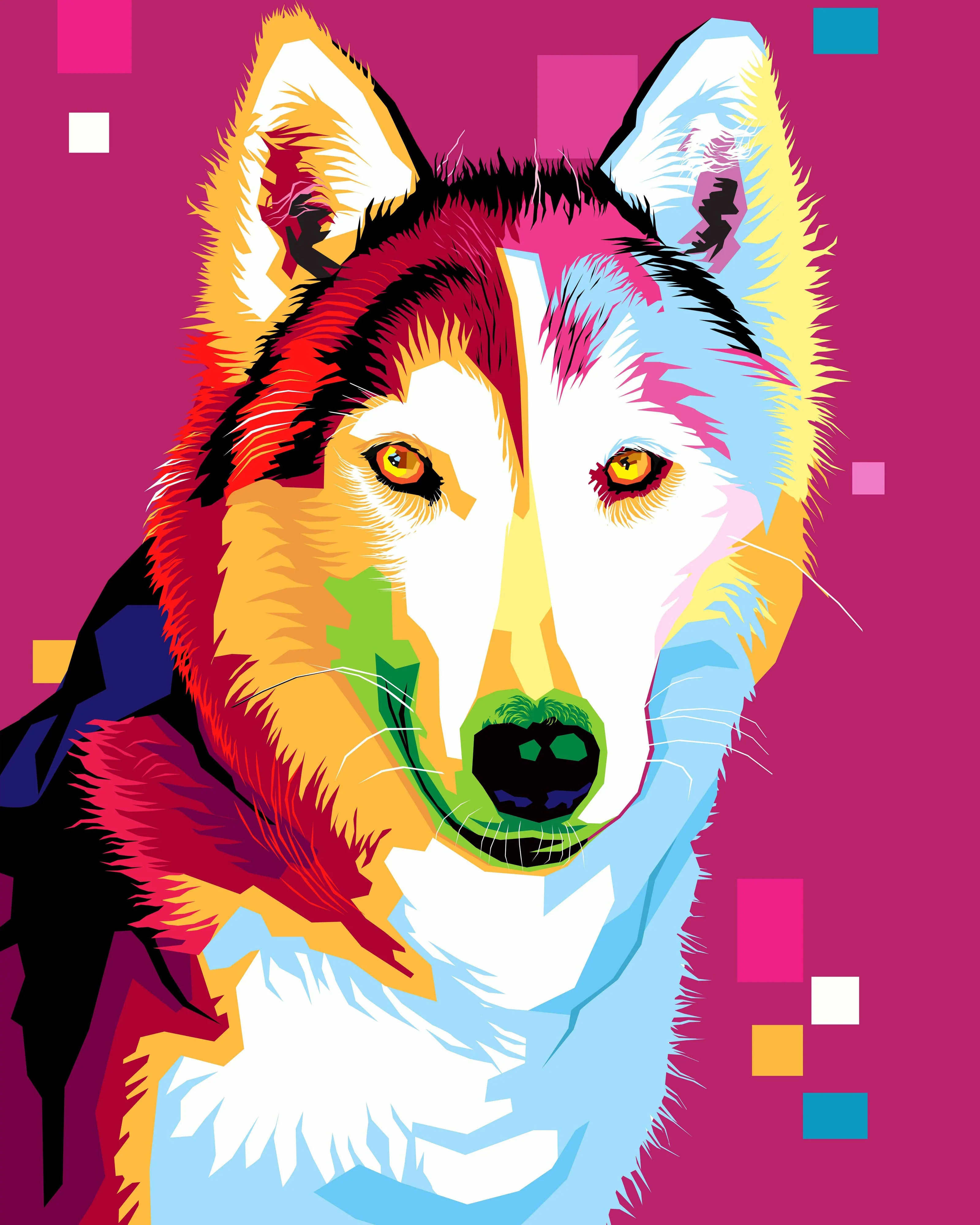 The Style: A pet portrait in Color WPAP style would be different and in this case, the difference would be awesome! Inspired by the Cubist art style, WPAP recreates familiar images in a different, more colourful, more striking form. By using straight lines instead of curves, a WPAP portrait would give a more powerful and vibrant representation of your pet. This portrait style is extremely popular on social media sites across the world; create a potentially viral image of your pet by commissioning a WPAP portrait with us! Our team of artists also has the expertise to create a 100% unique pet portrait using customized color palette. Browse through our extensive portfolio of portrait styles to choose one which you and your pet deserve.