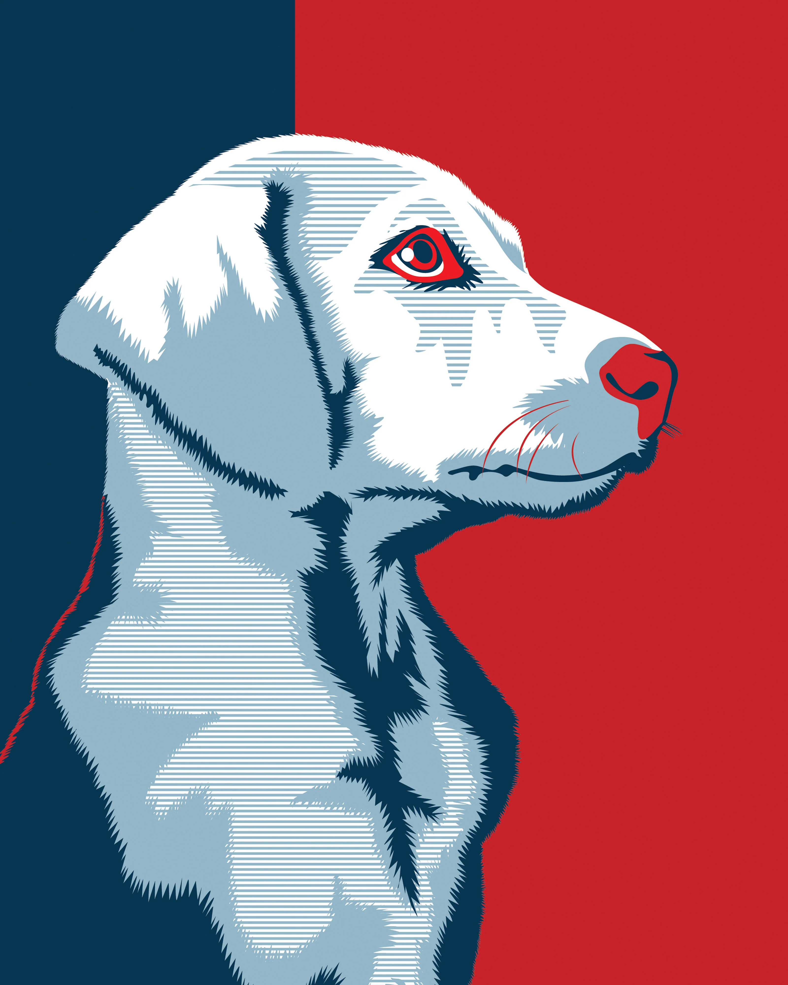 The Style: Create your very own pet portrait in Obama Pet Art art using a stylized image and the word or text of your choice below. The famous stenciled red, blue and beige poster of President Obama with the word “Hope” beneath it has been recreated a million times with fantastic results. A superb style that makes for a superb portrait!! Our artists will create a customized pet portrait in this unique style, based on your preference of the image and text to be used.